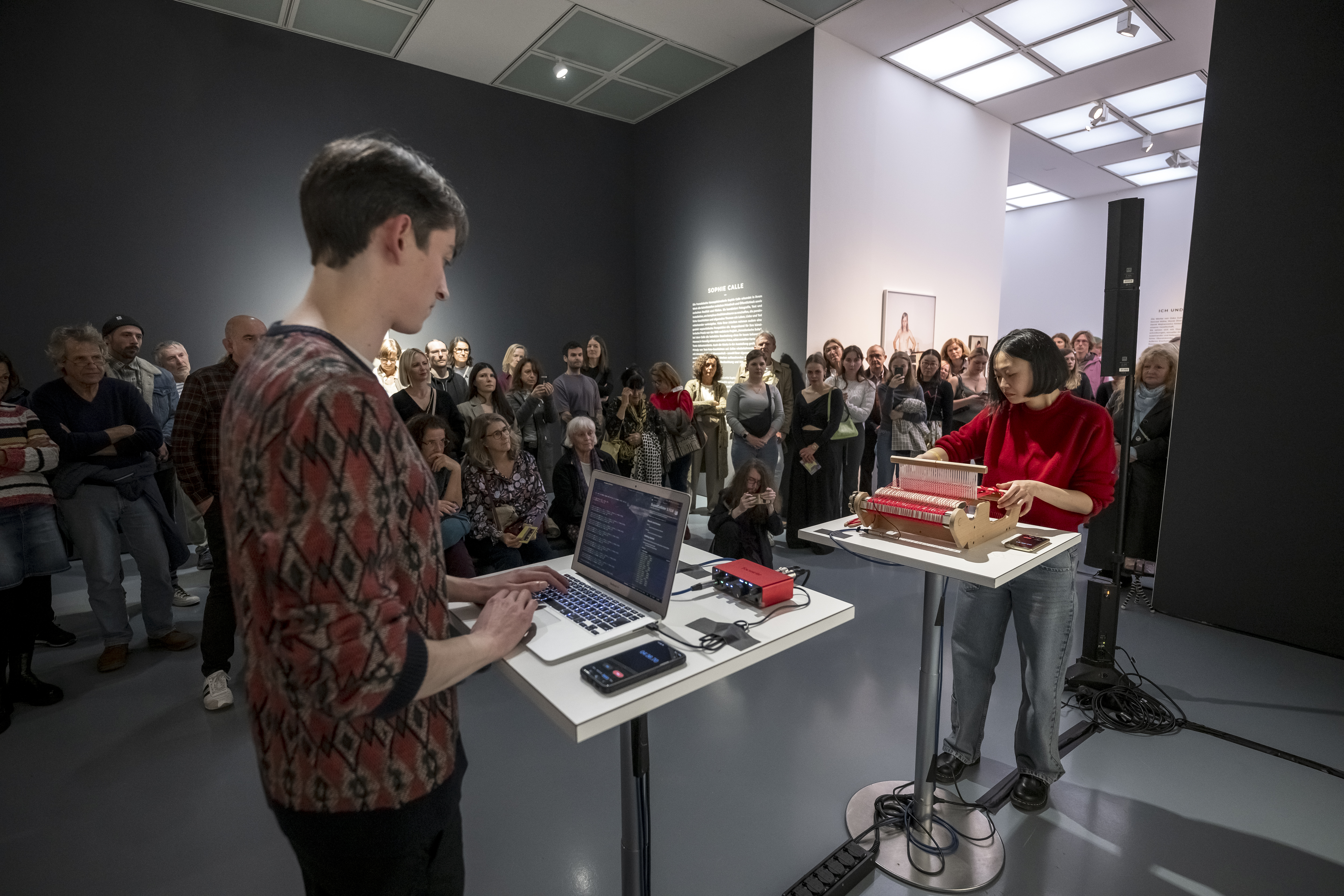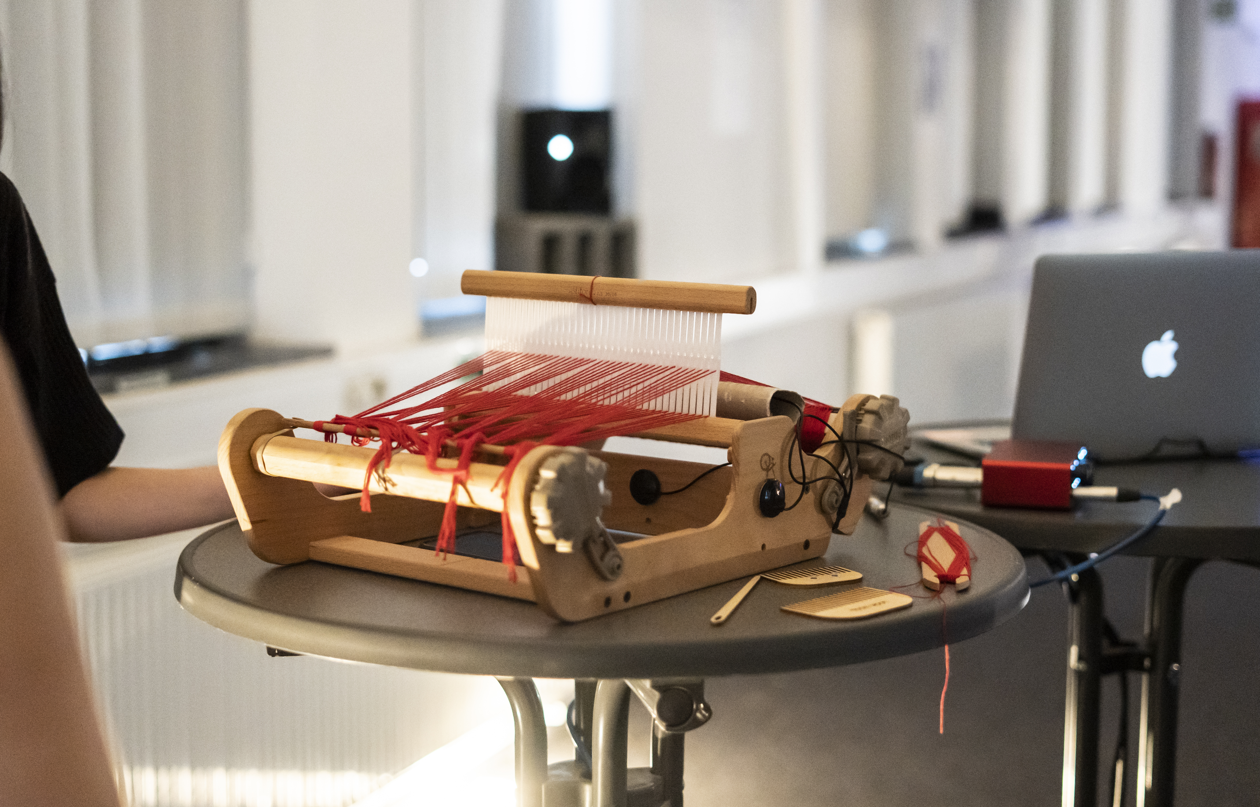 A weaving frame, a loom, a weaving machine never only produce textile fabrics, but always sounds as well. In the performance sound weaving, these sounds become audible fabrics themselves with the help of a computer, inspired by weaving techniques, repetitive weaving patterns and the historical interweaving of weaving art and programming.